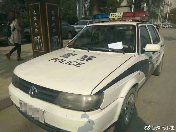 昨日,一輛警車在渭南街頭違法停車,有市民拍照并開具了一張打印的“違章通知單”(“違章”應為“違法”,下同),照片在朋友圈引起熱議。