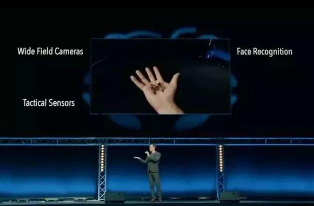 一個體型類似蜜蜂的小型機器人飛入會場并輕易躲過演講人抓捕,其擁有 anti-sniper 技術,完全基于 AI。