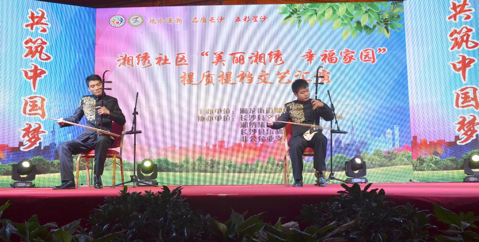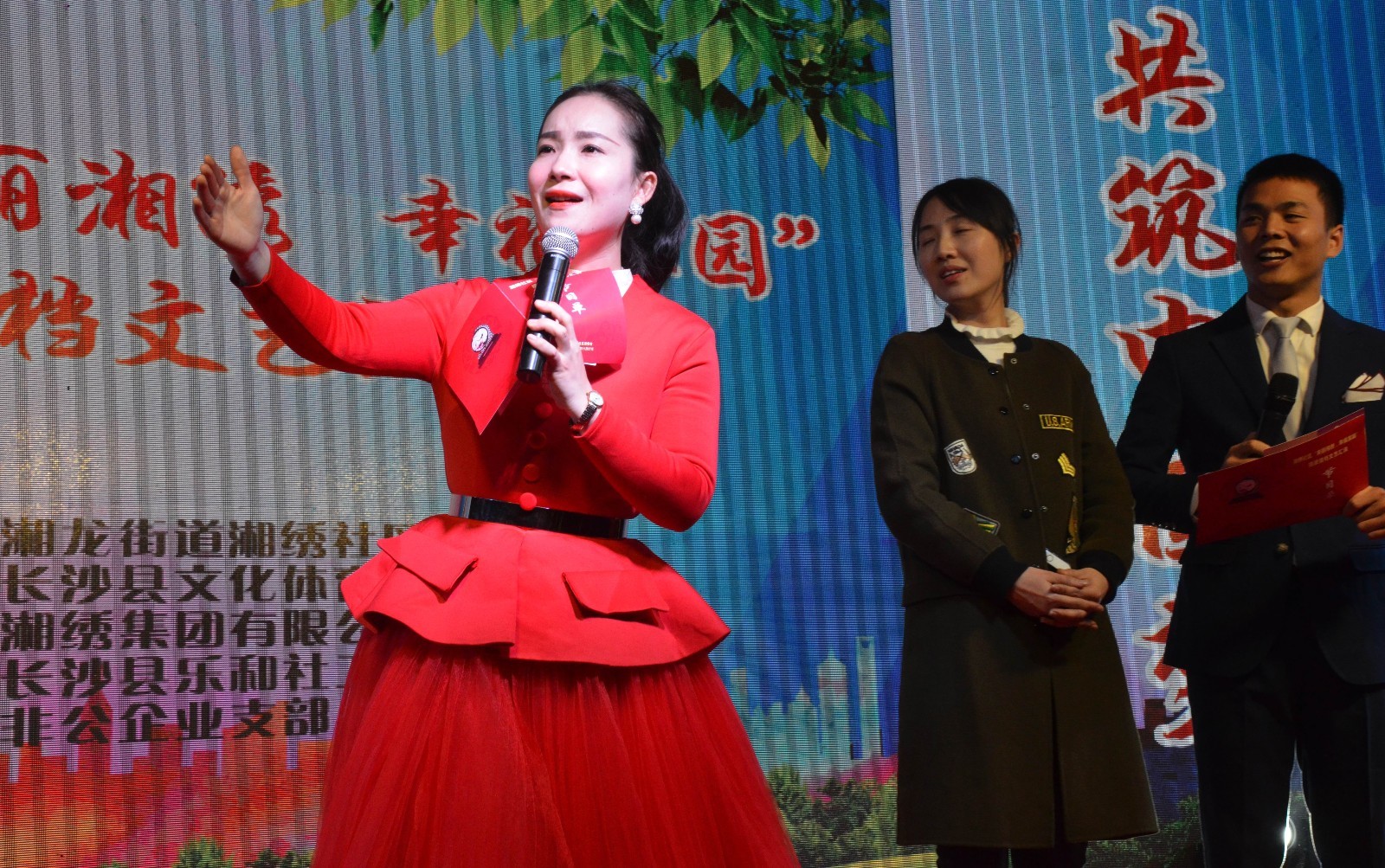 2017年11月27日晚,一場弘揚湘繡傳統文化的 “美麗湘繡,幸福家園”提質提檔文藝匯演晚會在長沙縣湘繡社區舉辦,文藝晚會將宣傳十九大文化自信活動推向高潮。該場節目以湖南湘繡城集團自己編劇、自作詞、自己投資拍攝的電影故事片《國禮》,主題曲《指尖上的超越》拉開帷幕。其中快板《錦上添花看湘繡》,歌頌了湘繡技藝的傳承與保護;小品《緣起湘繡》令人捧腹大笑,將晚會推向高潮;湘繡歌舞表演秀《家和萬事興》,將我國傳統的“和、孝”文化與湘傳藝術完美地結合起來,演譯出一曲“錦繡瀟湘,藝傳天下”的優美頌歌。